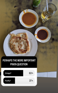 Now comes the fun part: flipping the dough. This is where the real skill comes in. The prata uncle will grease his work table and hands with oil before taking a piece of the dough and stretching it out until it’s paper thin. It takes a lot of practice to get the technique down, but when it’s done right, it’s a thing of beauty (and also the source of many awesome tik tok videos). Once the dough is stretched out, it’s folded into a rectangle or circular shape and tossed onto the hot griddle. When dark brown “blisters” start to appear on the surface, you know the roti prata is cooked to perfection. The process of flipping and cooking the dough is considered an art form and requires skill and practice. A well-made roti prata SHOULD be crisp on the outside and soft on the inside (although there are variations).